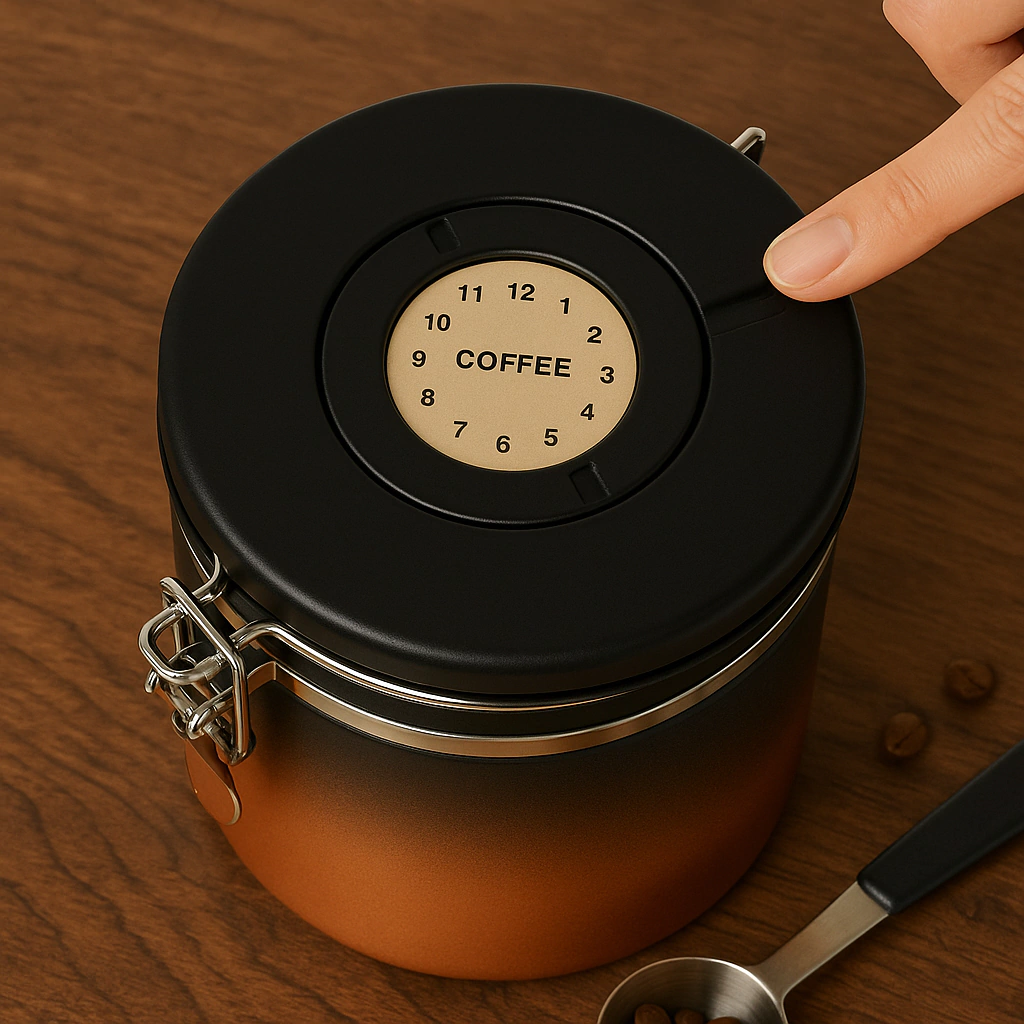 Seguimiento de día y mes: puedes disfrutar de un café fresco en cada momento. Establecer la fecha de almacenamiento o la fecha de caducidad con el rastreador de fecha en el tarro de café, lo que puede ayudarte a realizar un seguimiento de la frescura de tus granos de café para evitar desperdicios